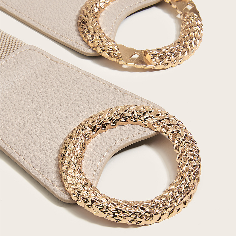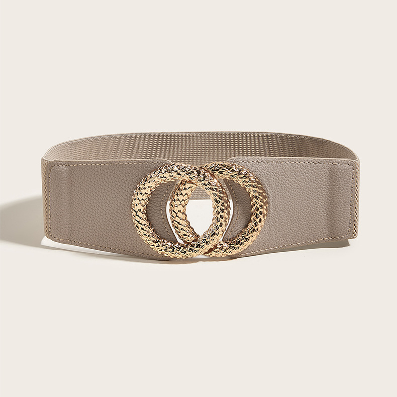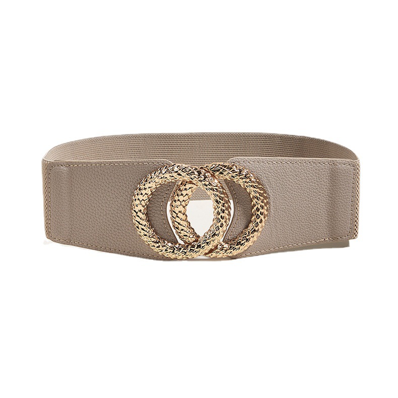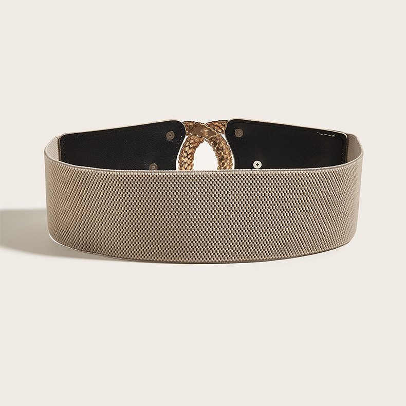 Women’s fashion accessory for coats, dresses, suits. Elastic waist belt with decorative buckle.