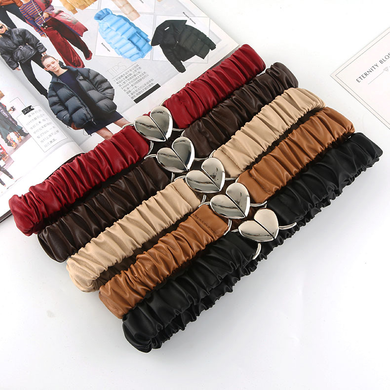 网红同款装饰弹力宽腰带,仿皮材质,铝合金扣头,对扣设计,文艺风格,电镀工艺,重量50克