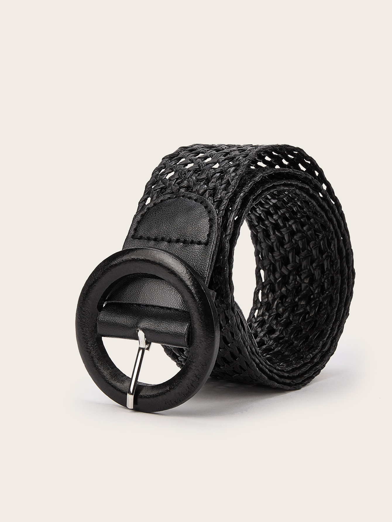 黑色编织网布腰带,圆形扣环。经典波西米亚风格,重31克,宽3.8厘米。永不过时的配饰。