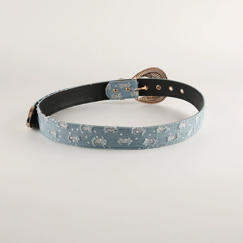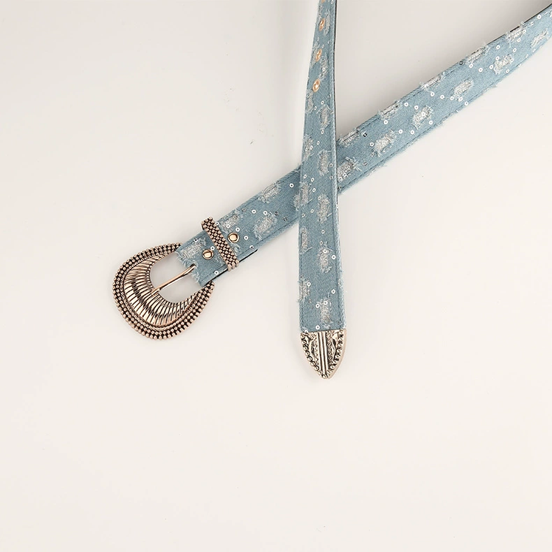 Denim Belt Vintage Carved Leather Belt – European American Style Pin Buckle Trendy Jeans Belt