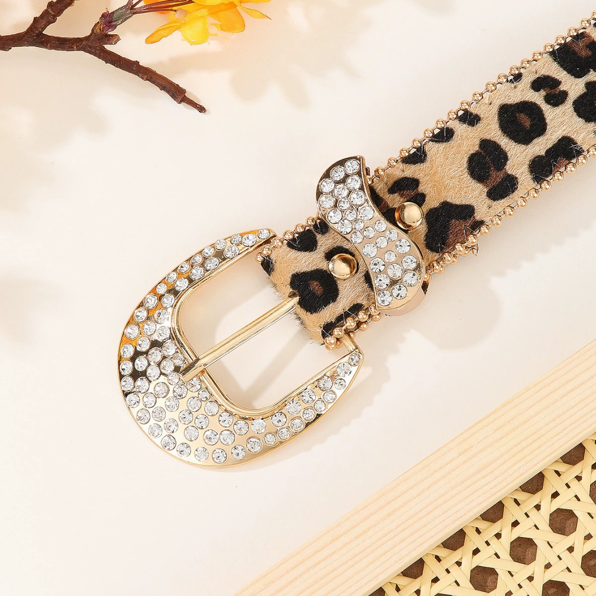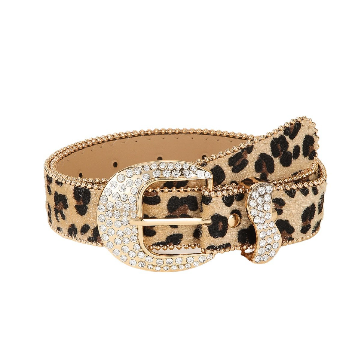 豹纹,配金色钻水搭扣和串珠滚边。美式复古风格,适合另一类时尚主题。宽3.3厘米,长103厘米。