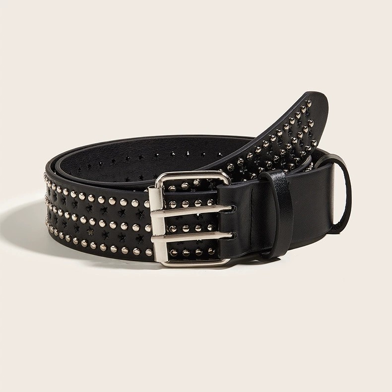• 朋克风格星形铆钉腰带,带多孔设计