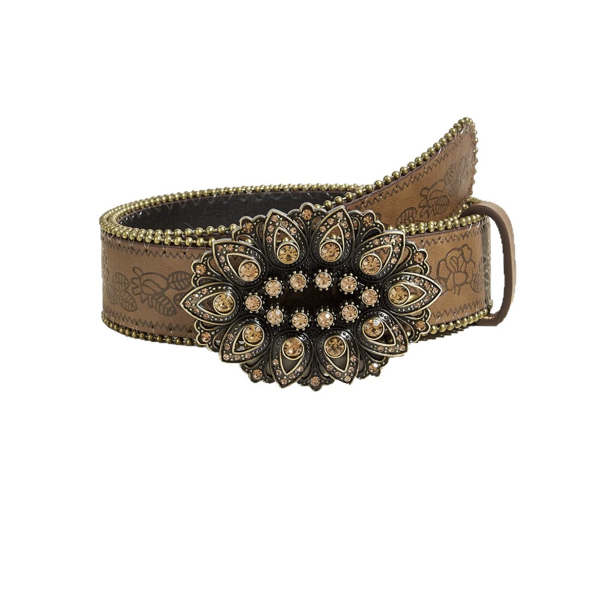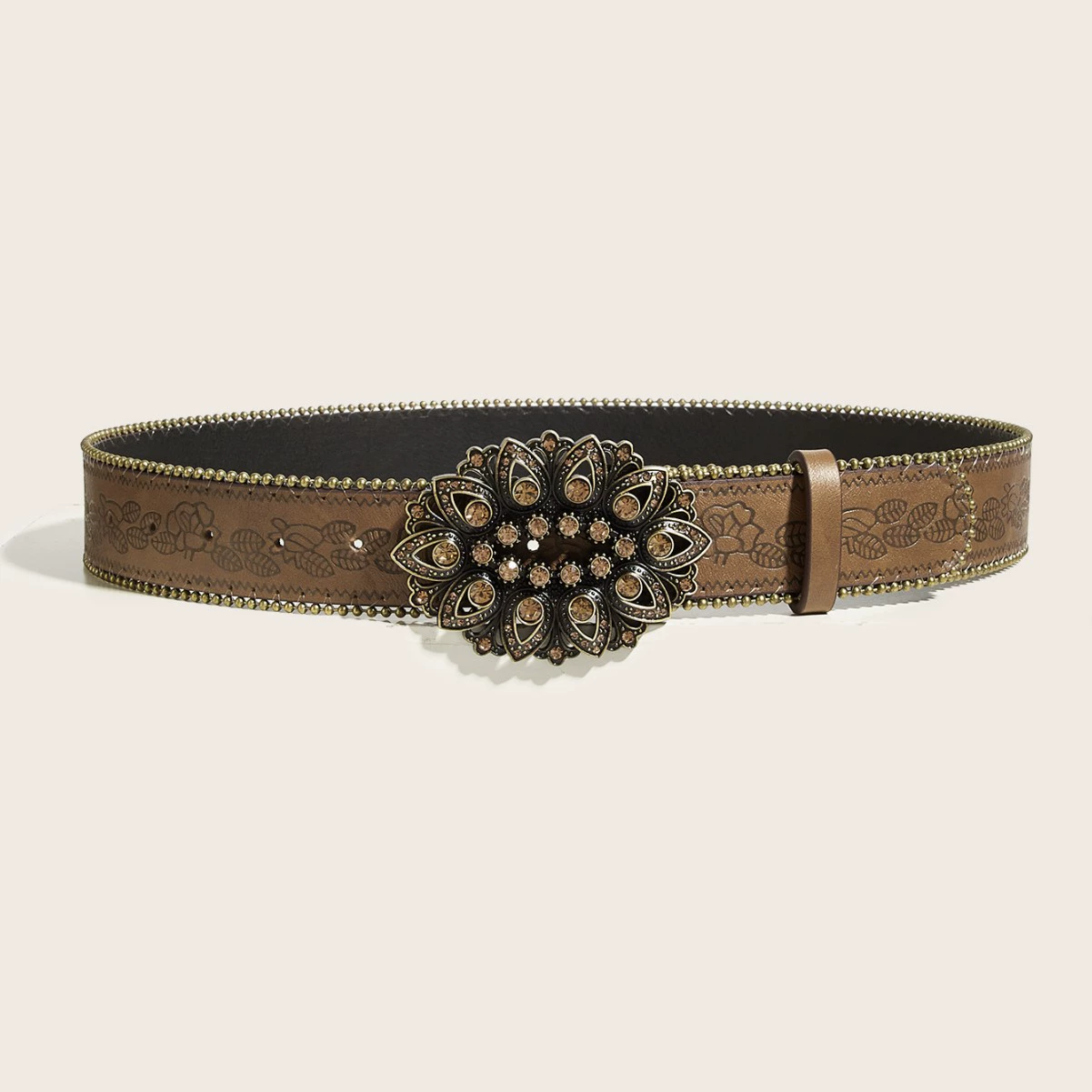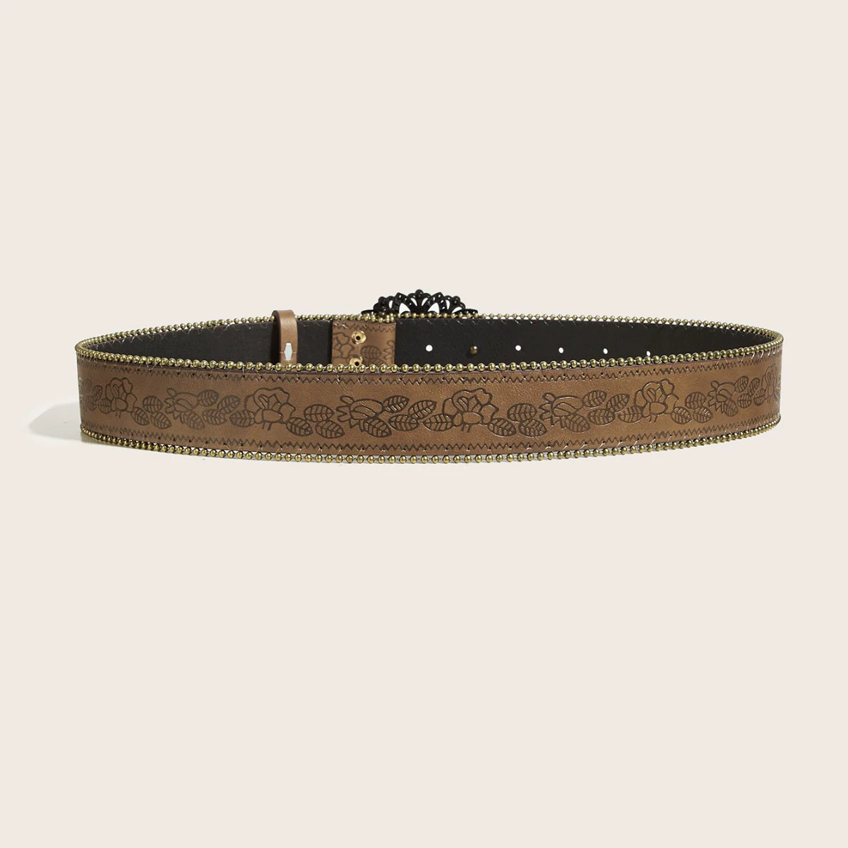 Vintage Bronze Flower Rhinestone Belt – Punk Style Rivet Belt