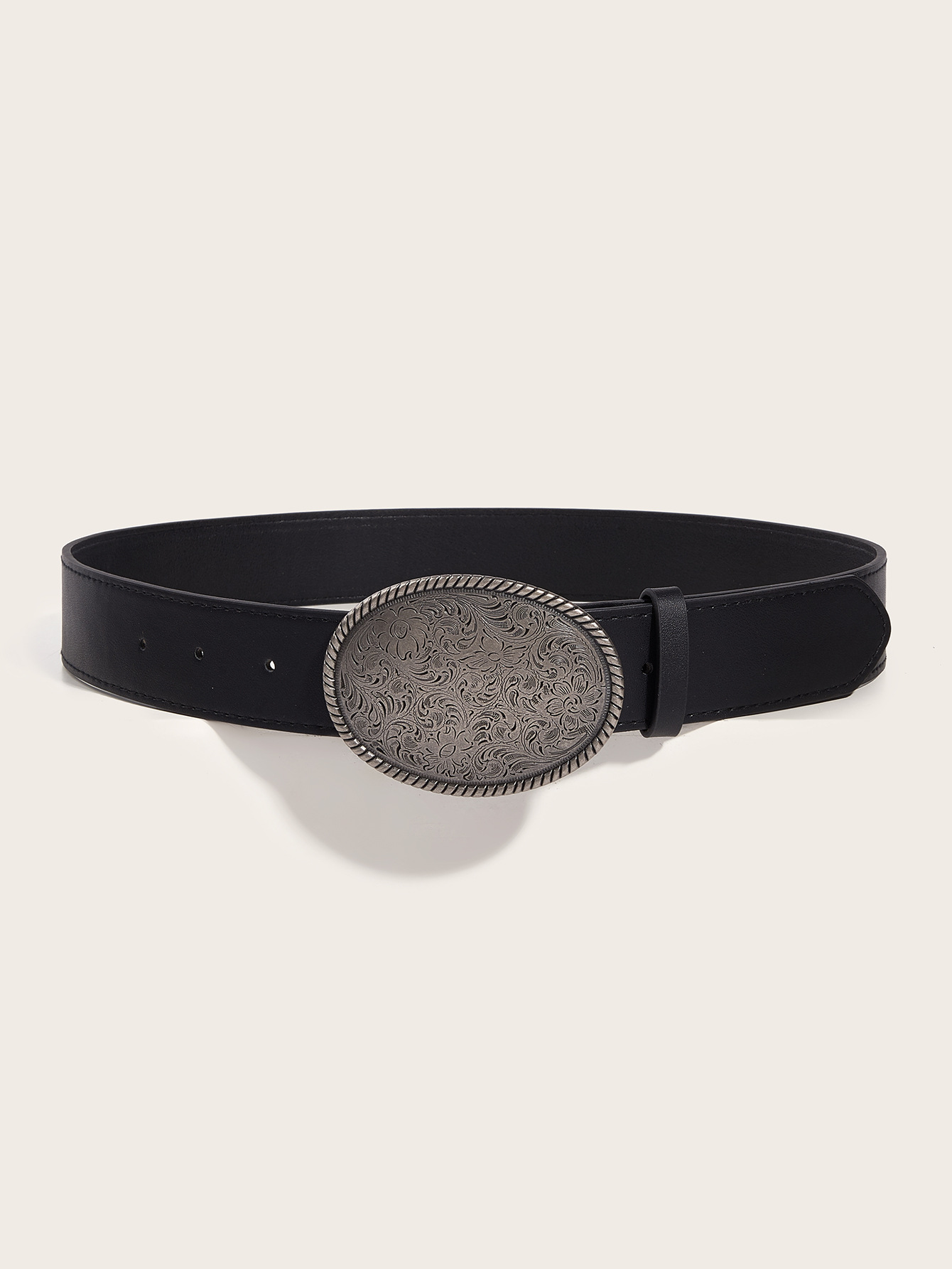 Vintage Western PU Leather Belt with Engraved Oval Buckle – Men’s Casual Waistband (3.8cm Width)