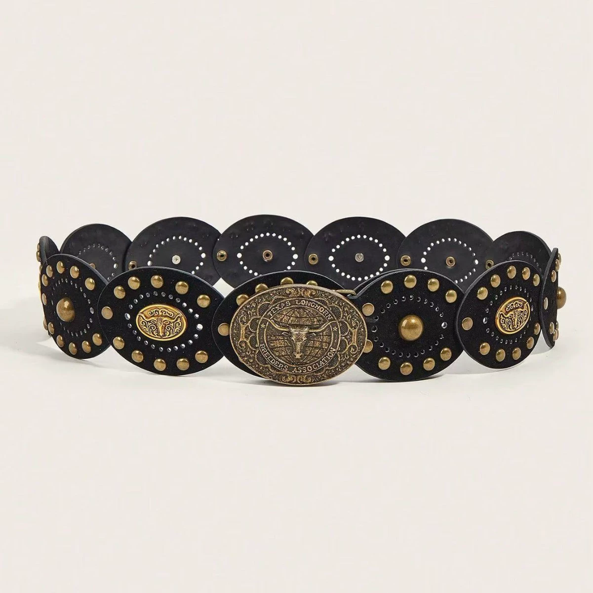 Wholesale Western Bull Head Belt | Vintage Cowboy Rivet Faux Leather Wide Belt Bulk
