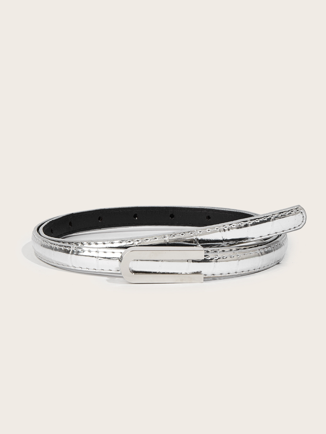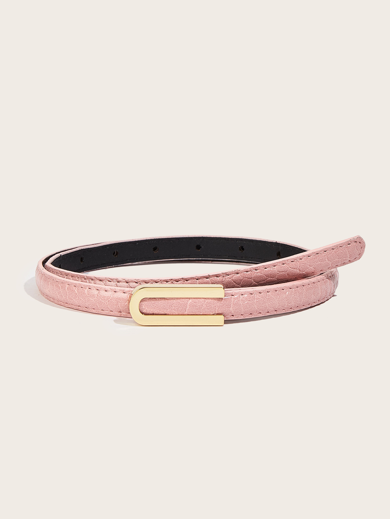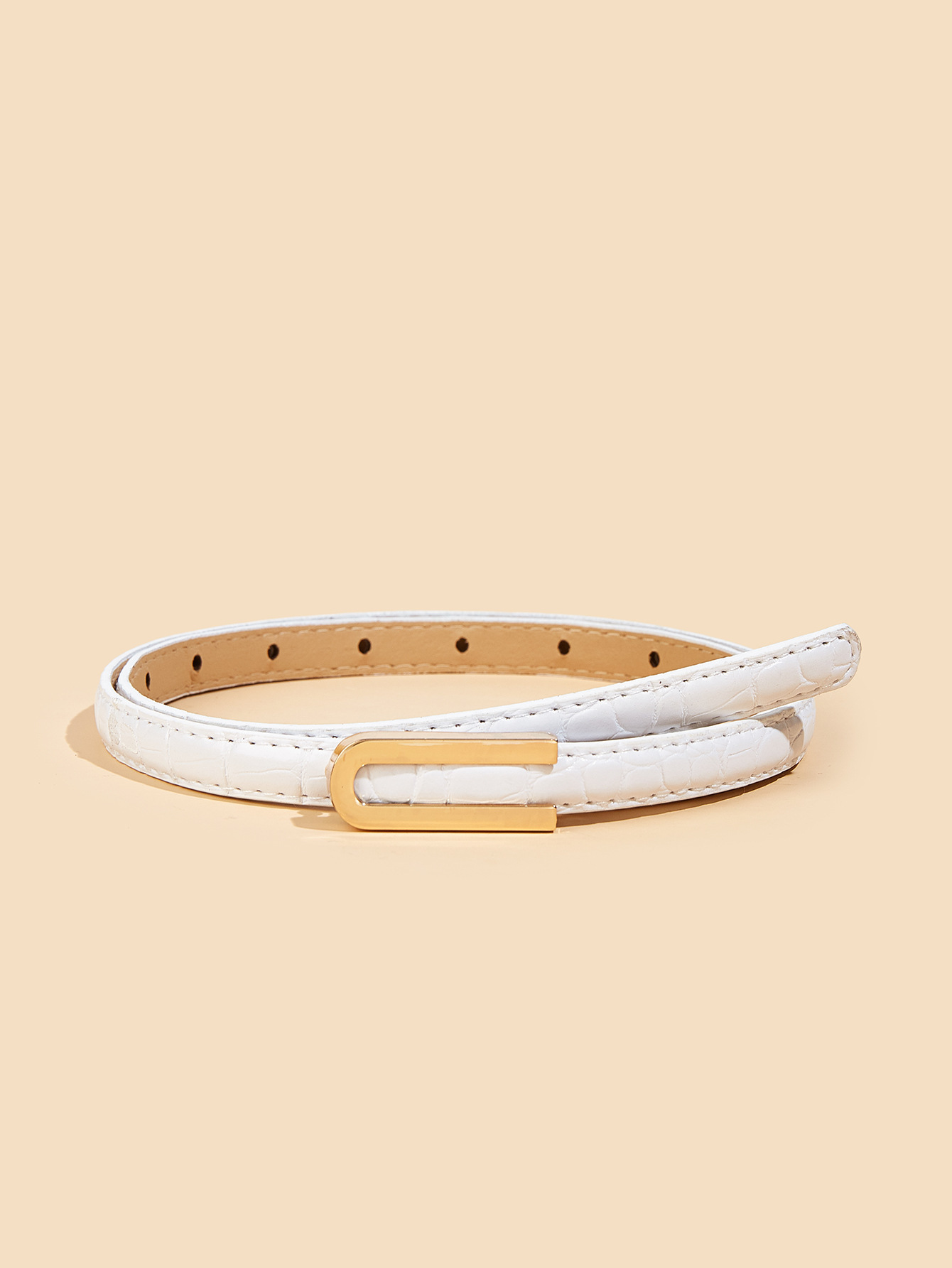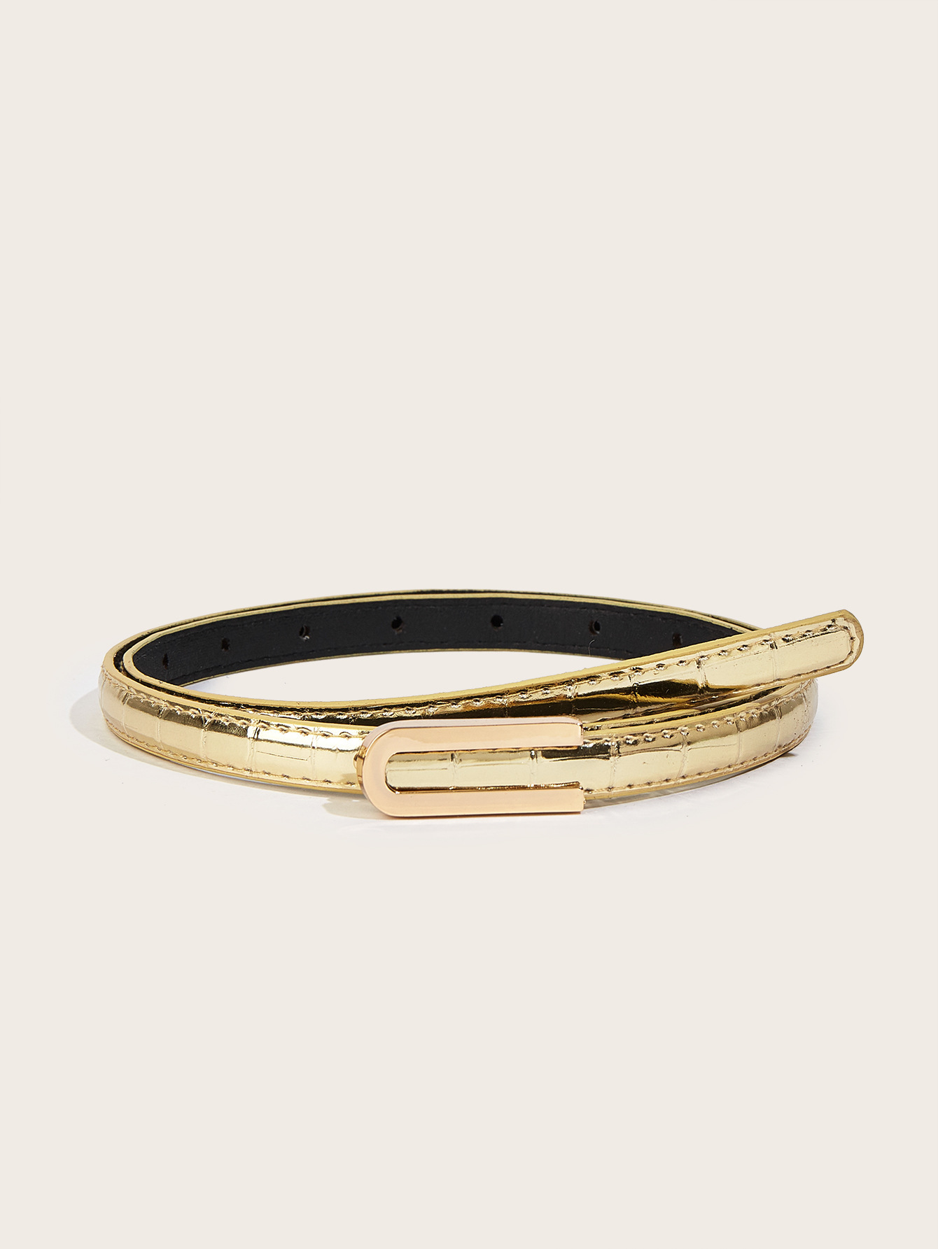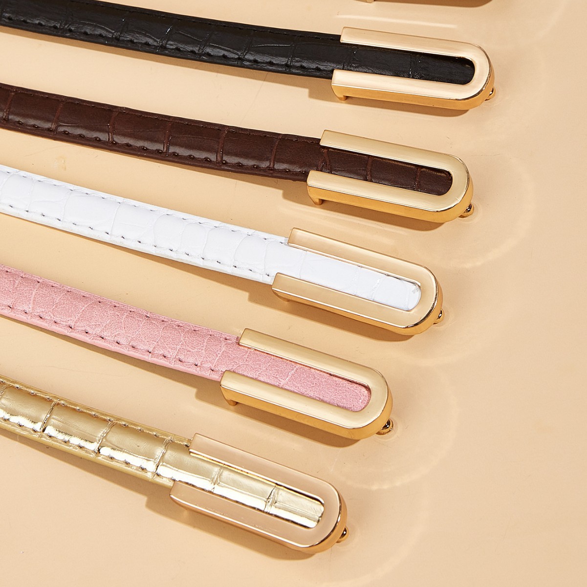 纤细的1.3厘米鳄鱼纹腰带,配U型扣。是搭配牛仔裤和连衣裙的完美配饰。共有6种颜色可选。