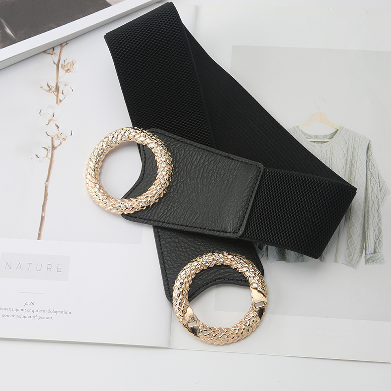 Wholesale Women Snake Pattern Double Round Buckle Elastic Waist Belt Bulk Fashion Accessories