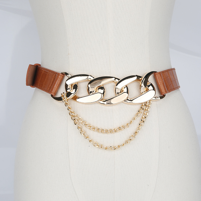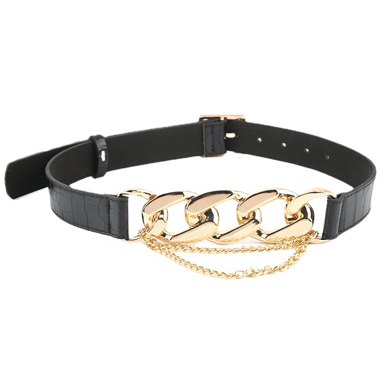 这款优雅的石纹方扣腰带,让您的造型更显精致!独特的石纹纹理搭配方形扣设计,这款百搭腰带可完美搭配连衣裙、西装、外套等各种服饰。提供带装饰链和不带装饰链两种款式,并有两款经典颜色可选。